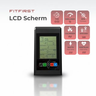Het duidelijke display toont snelheid, afstand, tijd, calorieën, RPM, wattage en hartslag. Met één druk start je standaard intervalprogramma’s (20/10 en 10/20) of stel je eigen sessies in. De console heeft een hartslagontvanger; de meegeleverde borstband maakt hartslaggestuurde trainingen direct mogelijk.